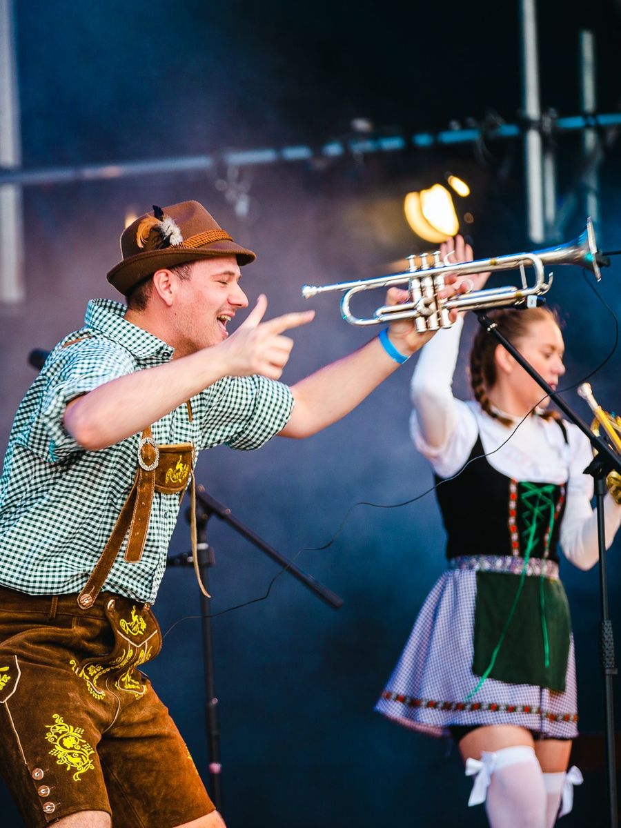 A one-of-a-kind Bavarian-themed party band combining live brass with electronic drums and samples.