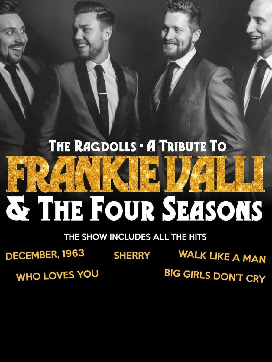 🎶 The Ragdolls – A Sensational Jersey Boys Tribute! 🎶 Step back in time and experience the electrifying sound of Frankie Valli & The Four Seasons brought to life by The Ragdolls! With flawless harmonies, slick choreography, and those unforgettable falsetto vocals, this award-winning tribute group delivers all the hits you know and love – Sherry, Big Girls Don’t Cry, Walk Like a Man, December 1963 (Oh What a Night) and many more. From their razor-sharp suits to their high-energy stage presence, The Ragdolls capture the magic of the original Jersey Boys, taking you on a nostalgic journey through the golden era of music. Whether you’re a lifelong fan or hearing these classics for the first time, this show guarantees a night of feel-good tunes, dancing in your seat, and pure showbiz charm! ✨ Get ready for a night that’s “too good to be true!”